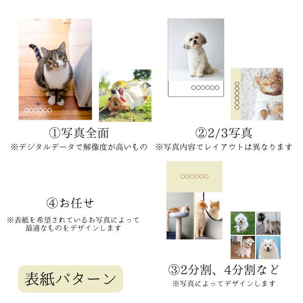 デザインのこだわり: 表紙パターンのご要望を承ります。本ページのレイアウトはオートレイアウト(写真の内容からAIが自動で最適な配置やレイアウトを組んでいきます)。製本前に、出来上がりデザインをご覧いただき、写真の大きさや文章の誤字脱字チェックなどをする事が可能です。